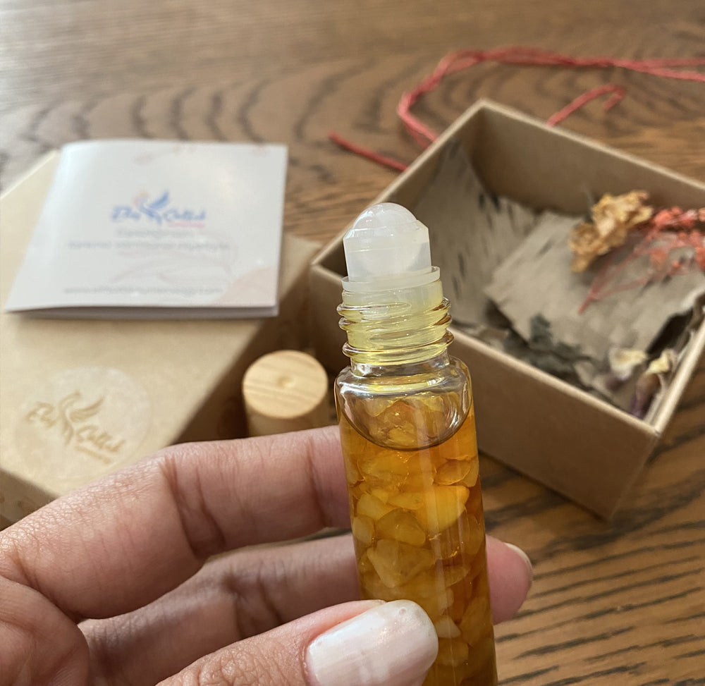 Pembe kuvars taşı içerisinde özel sırla hazırlanan Yasemin ve Paçuli Yağı;